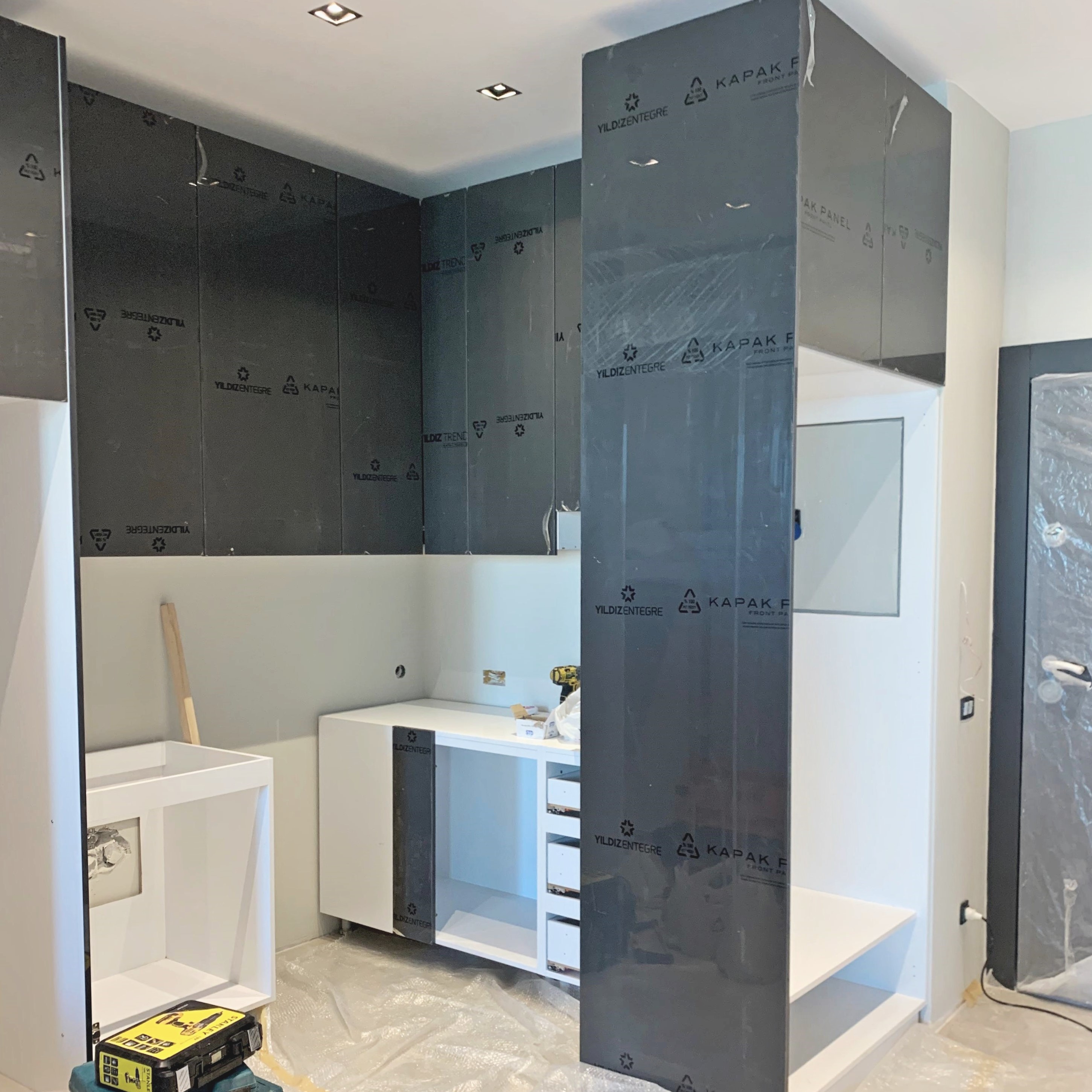 Öncelikle kaba inşaat ve altyapı tesisat işleri tamamlanır. Mimarınız malzemelerin siparişlerini verir ve tedarik sürecini koordine eder. Eşzamanlı olarak ince işlerin kararları verilir ve atölyemiz mobilya üretimlerine başlar.